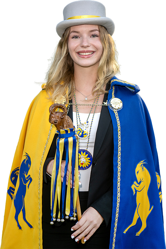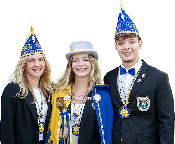 Treu nach meinem Motto „Ich lebe für das Tanzen hier, Zibomo ist mein Lebenselixier“, möchte ich mit euch diese wunderschöne und neue Session feiern. Unterstützt werde ich von meinen Adjutanten Nova Holste und Louis Greve. Die beiden können es ebenfalls schon kaum erwarten, diese Session mit so einem tollen Team zu starten und zu feiern. Nova ist eine sehr gute Freundin von mir, die ebenfalls schon 3 Jahre bei der Tanzgruppe Blau-Gelb tanzt. Sie besucht die Mathilde-Anneke-Gesamtschule. Louis mein langjähriger Freund, der durch mich und meine Familie, den Spaß und die Freunde an dem Karneval entdeckt hat. Er absolviert sein Fachabitur an dem Hansa-Berufskolleg. Meine beiden Adjutanten leben und lachen für den Karneval und zusammen bilden wir ein unvergessliches Dreier Team.