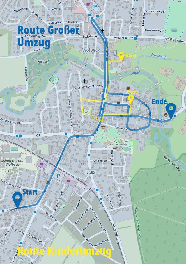 Auch in diesem Jahr werden wieder mehr als 500 bunt kostümierte Kinder aus beiden Grundschulen von ihren Schulhöfen zum großen Kinderumzug starten. Begleitet werden sie dabei nicht nur von der  Jugendhippenmajorin, Finja I., den Jukas und der Garde, sondern auch vom Spielmannszug der Freiwilligen Feuerwehr Wolbeck und den Happy Trumpets Ahlen e.V.